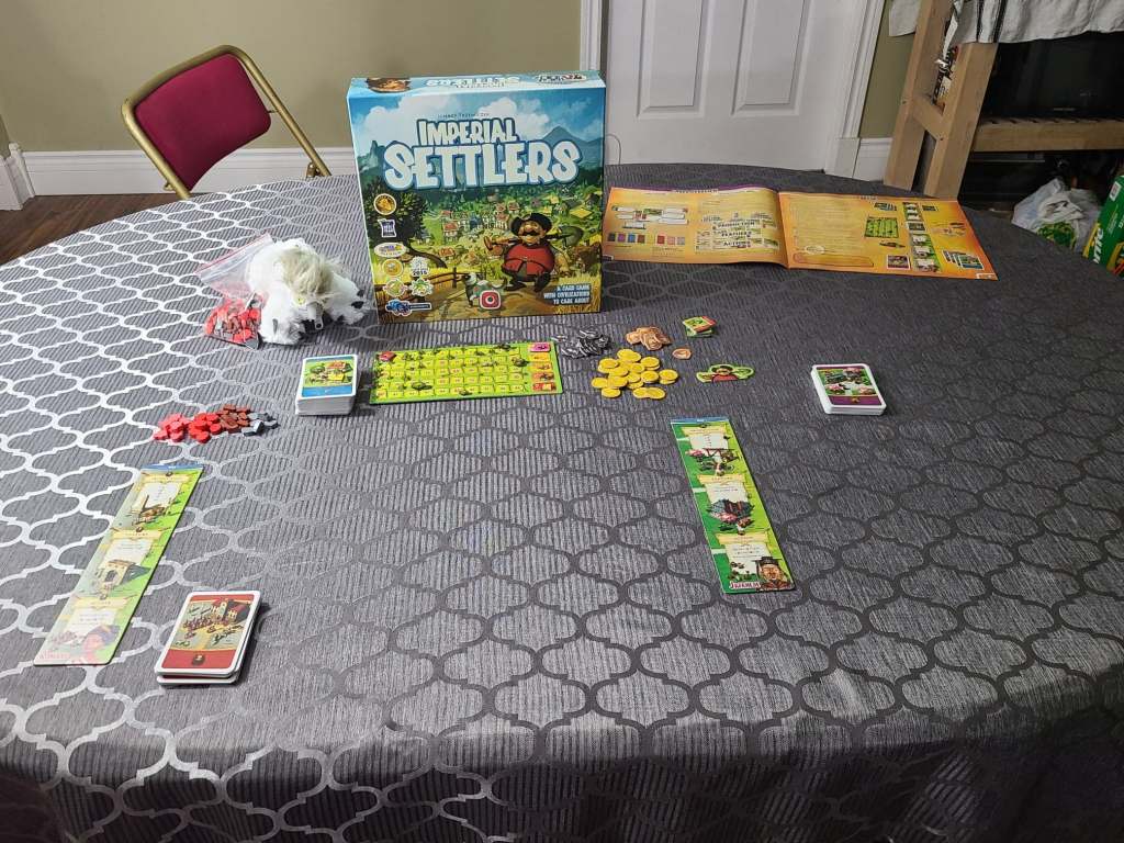 Good day friends, as both Christmas and the looming lockdown approach, Amanda and I decided to head out and pick up one more new game to add to the collection to keep us entertained for the next month, and what we found was Imperial Settlers. I’ve been a fan of Ignacy Trzewiczek’s games for a long time, and although I certainly like some more than others, I’ve never played one that I hate, so when I saw this on the shelf, I went straight to it.