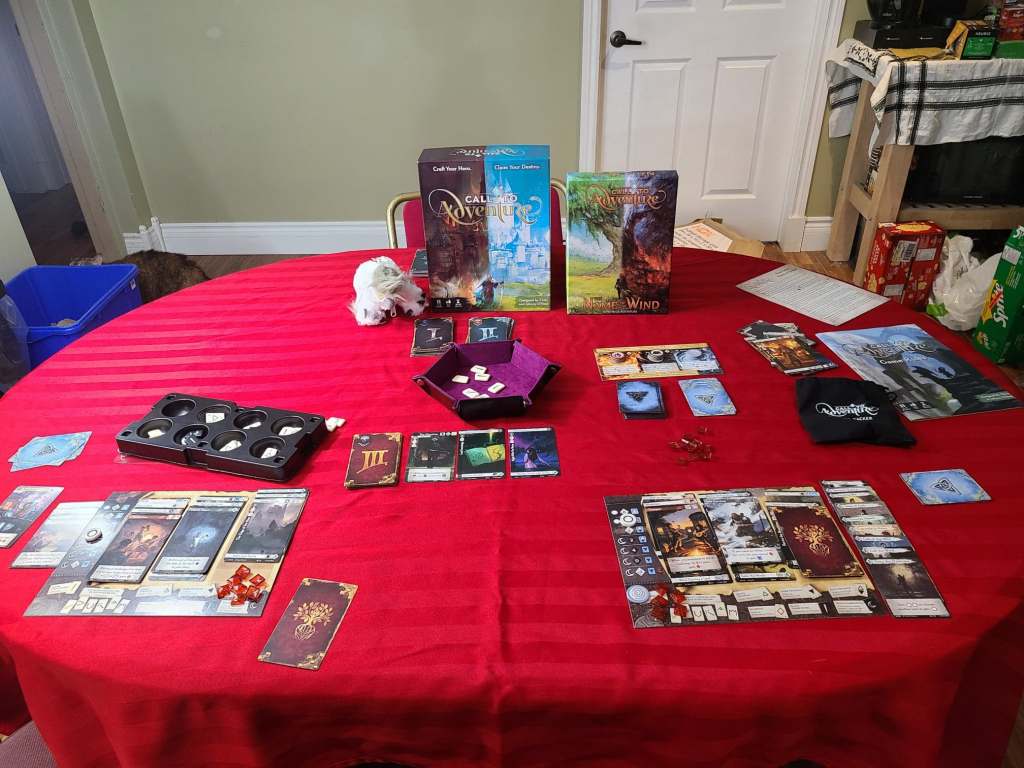 Merry Christmas everyone! Tonight after the festivities on zoom, Amanda, Hector and I sat down for a game of Call to Adventure. I’ve yet to play a Brotherwise game I didn’t like and had kickstarted this one back when I first heard about it. For those who don’t know Amanda is an on again off again fantasy author and our mutual love of storytelling is a big part of why we started talking in the first place, so this game seemed a natural fit for us. Although this is not our first game, today we are playing for the first time with the “Name of the Wind” Expansion.