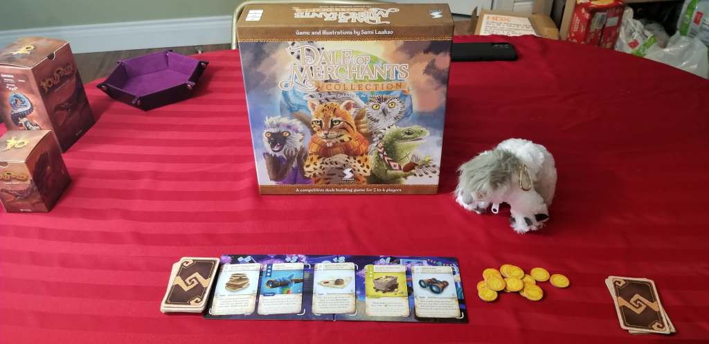 Dale of merchants is also very easy to get into. Each game is a standalone which can be combined with the others, so if you wanted to give it a try, or just keep a small box for transport you could just grab one of the base sets. Or you could be like me and buy all the content and the collectors box. A note on the collectors box, in addition to adding more animals, it also adds several modules, the most notable of which is the leaders. The leaders are asymmetrical player powers, of which there are many. Although I enjoy them in concept, I find the heart of the game is a quick simple deck builder and if I wanted something more complicated I would play something else, but that’s me.