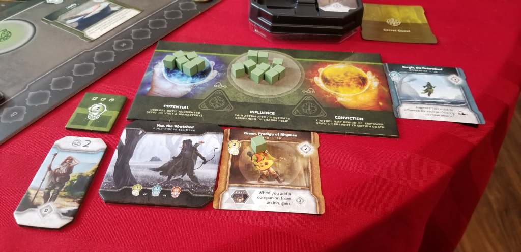 There are also secret missions doled out at the start of the game, so you can never know for sure how many points a player actually has and in addition, there are bonus points given out for having the most “stuff” of any given attribute, be it proficiencies, companions, traits etc. The map is randomized and is revealed through exploration, and individual locations can be controlled by a player, allowing them to score if other players make use of it. There is a lot more going on, but this is the general gist of how the game is played.