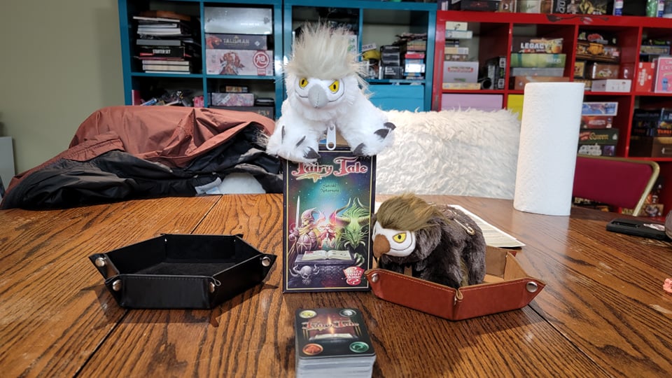 Greetings everyone. Amanda and I were recently joined by our ever faithful owlbear companions, Hector and Eddie, for a game of Fairy Tale. Fairy Tale is a drafting game, often compared to 7 wonders when it was released, although with it’s myriad expansions, they certainly aren’t similar anymore except in the they both involve drafting. But is the drafting fun? Read on to find out.